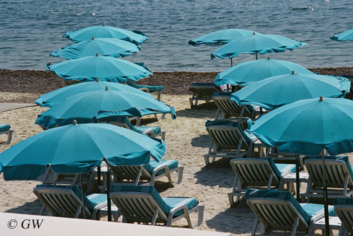 Parasollen op het strand