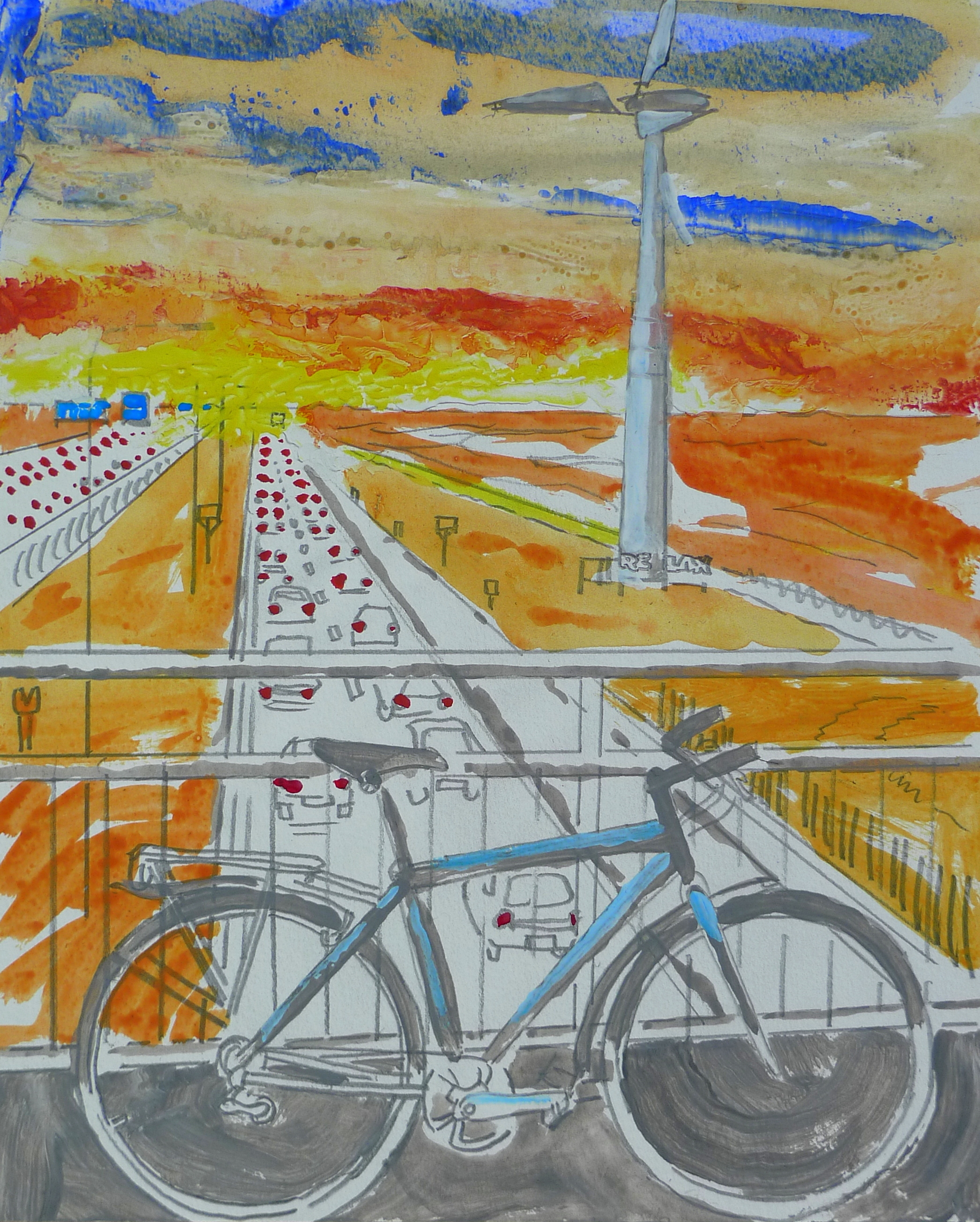 Met de auto of op de fiets, met ondergaande zon is het fijn om onderweg te zijn