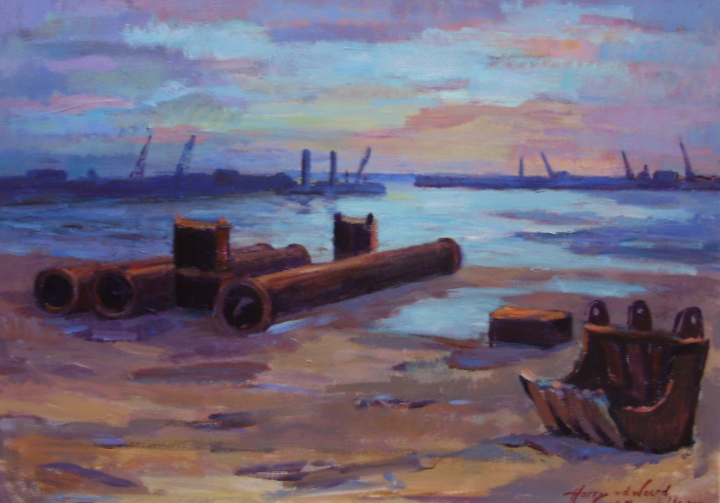Ook bij avondlicht is de Maasvlakte boeiend om een schilderij te maken