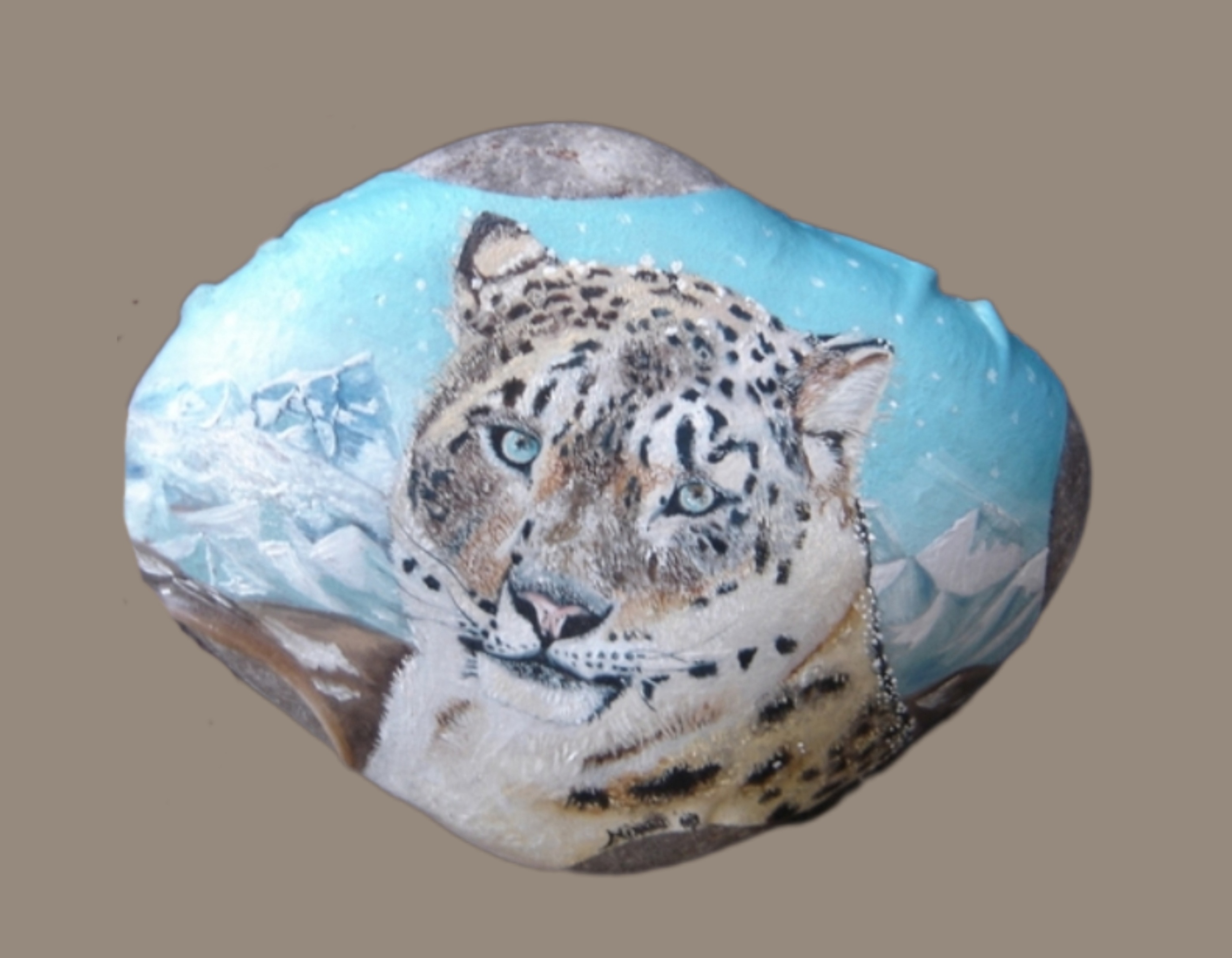 Dieren Steen Realistisch Beelden Stenen Fijnschilderen Leer Dierportret Beschilderde Oliever Sneeuwluipaard