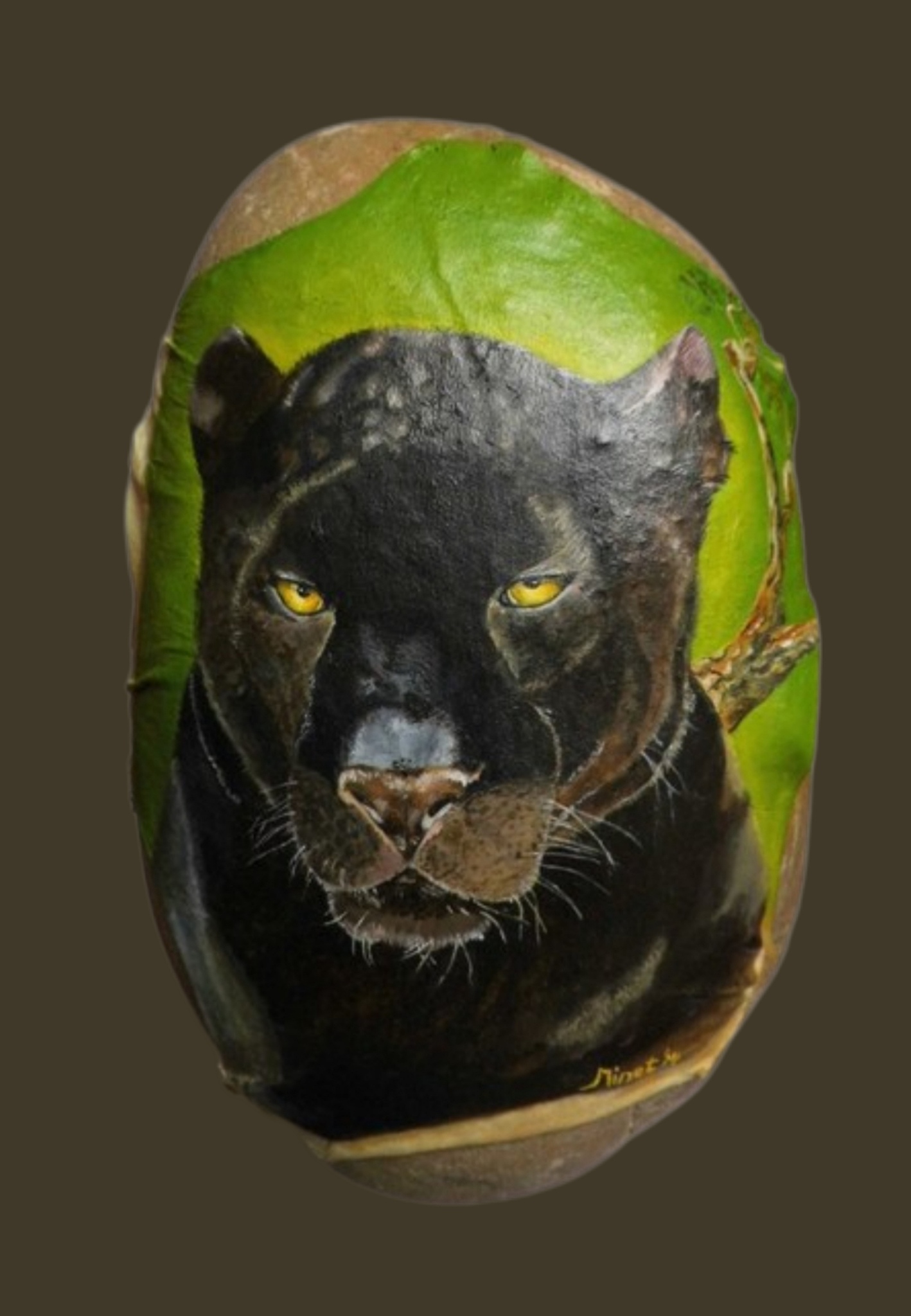 Zwart Portret Dieren Steen Realistisch Olieverf Beelden Stenen Fijnschilderen Leer Beschilderde Luipaard Rawhide