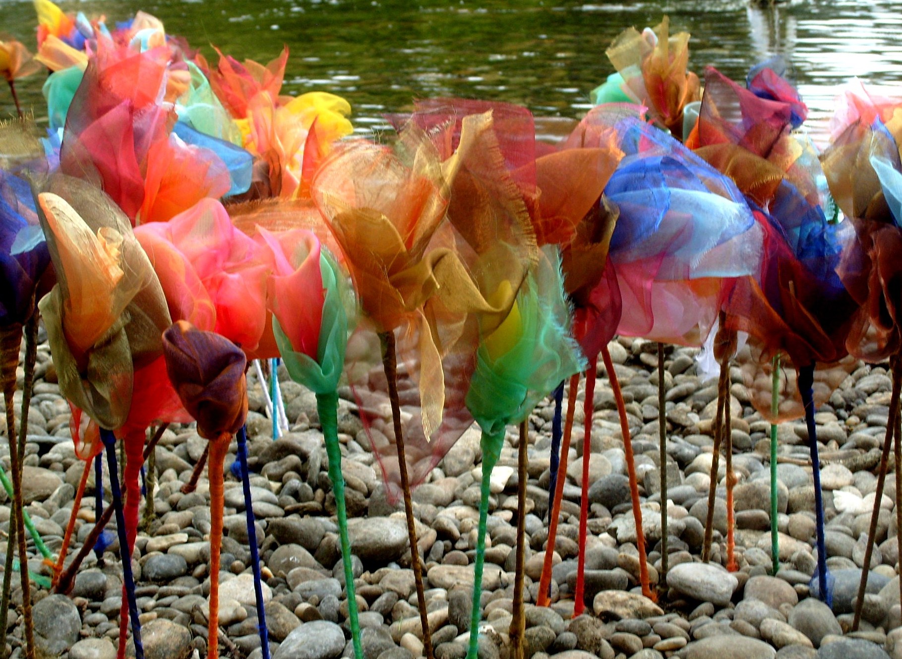Installate Flowers Textiel Dordogne Rivier Reizend Kunstproject