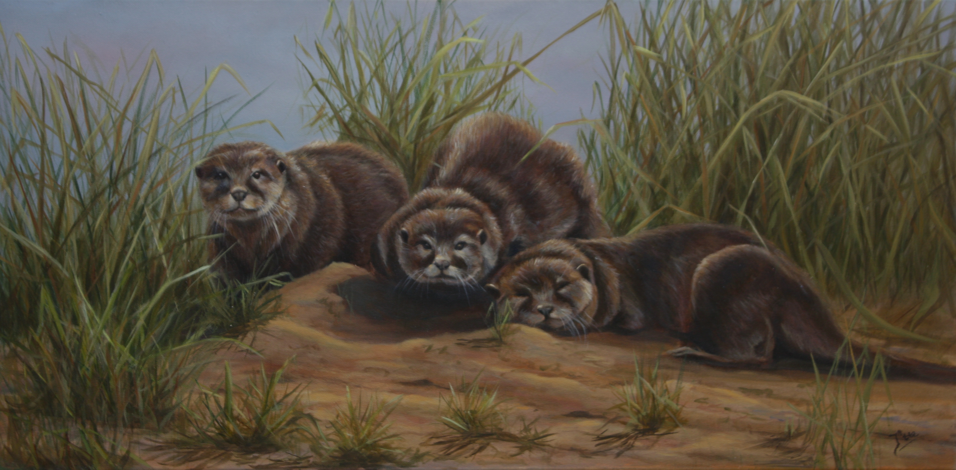 Otter Otters Oilpaint Wildlife Nature Natuur Olieverf Dieren