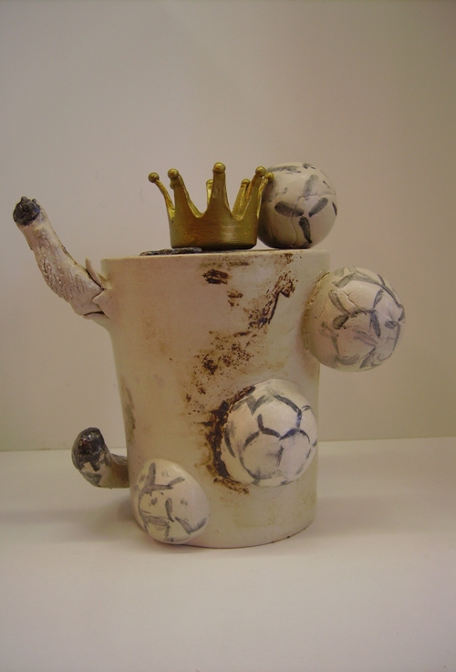 klei, oxydes, glazuur en goudverf. Voor een hond.