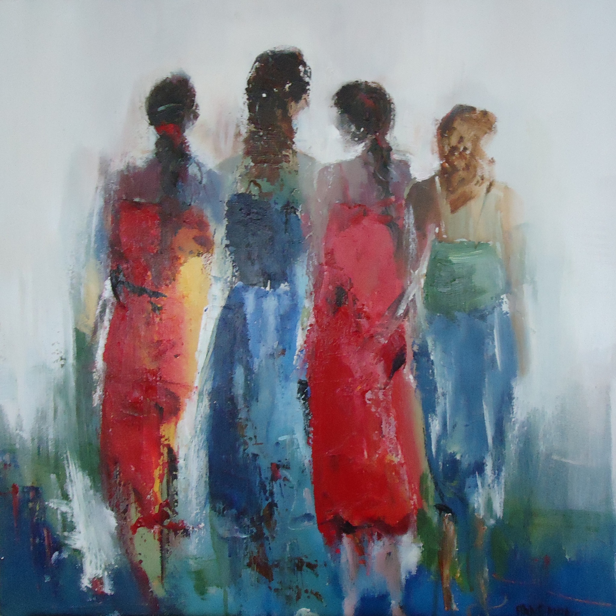 Welkom op mijn website. Ik schilder vnl. met acrylverf op grote doeken en werk met vrolijke, heldere kleuren. Mijn werk is figuratief abstrakt. Vooral mensen en bloemen inspireren mij tot schilderen.