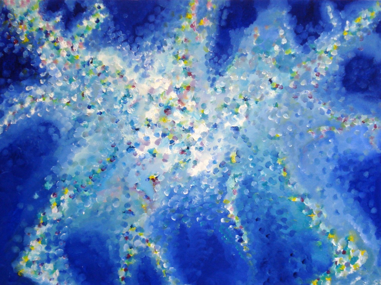 Schilderij Wit Geel Blauw Groen Olieverf Groot Linnen Pointillisme