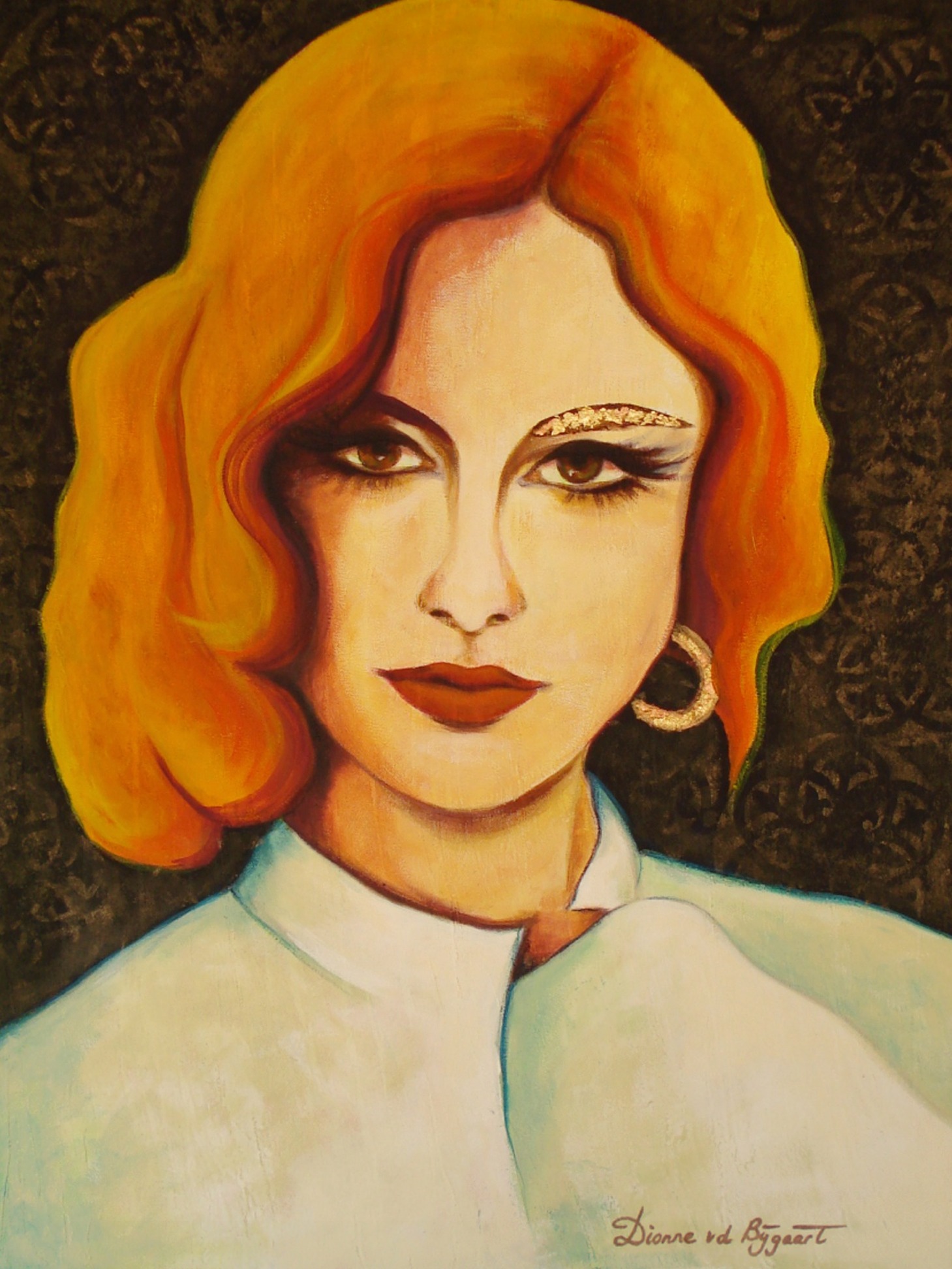 Different inner world. Bladgoud accenten in haar wenkbrauw en oorbel.