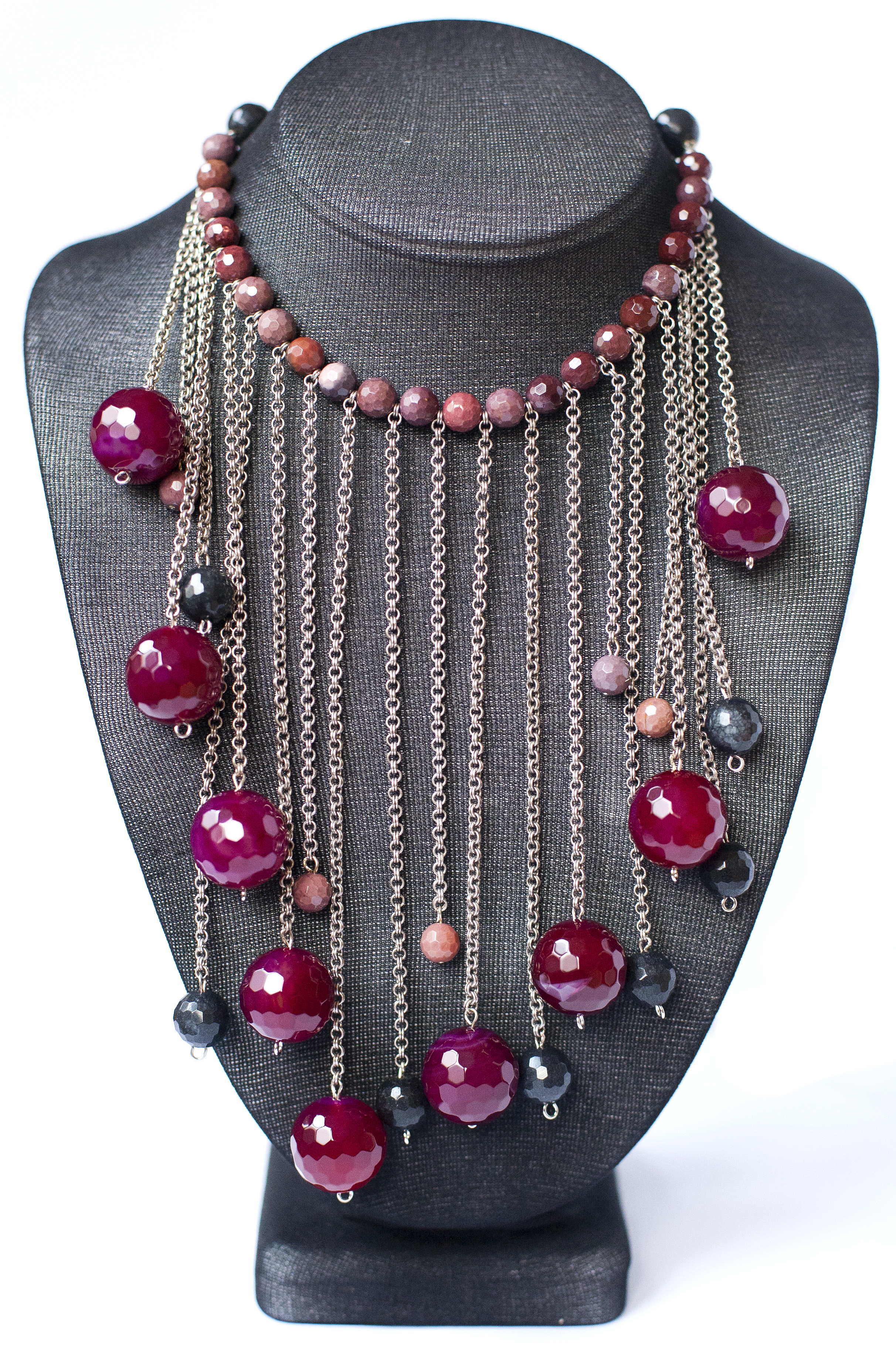 Collier Agaat -Jashma is geinspireerd op de natuursteen Agaat , die ook rijkelijk in het collier is verwerkt.
