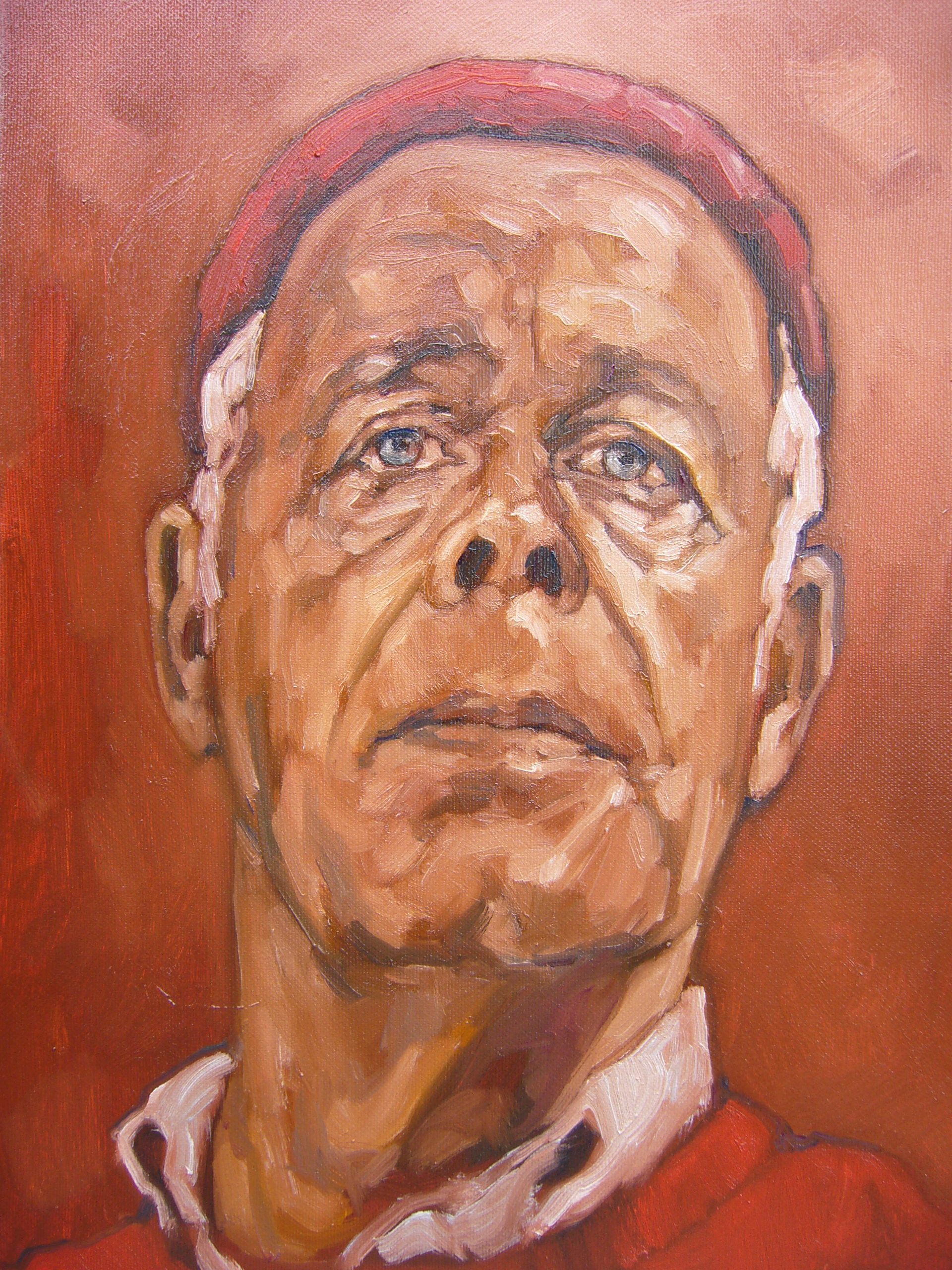 Schilderij Rood Portret Man Gezicht Portrait Painting Red Face Petje Cap