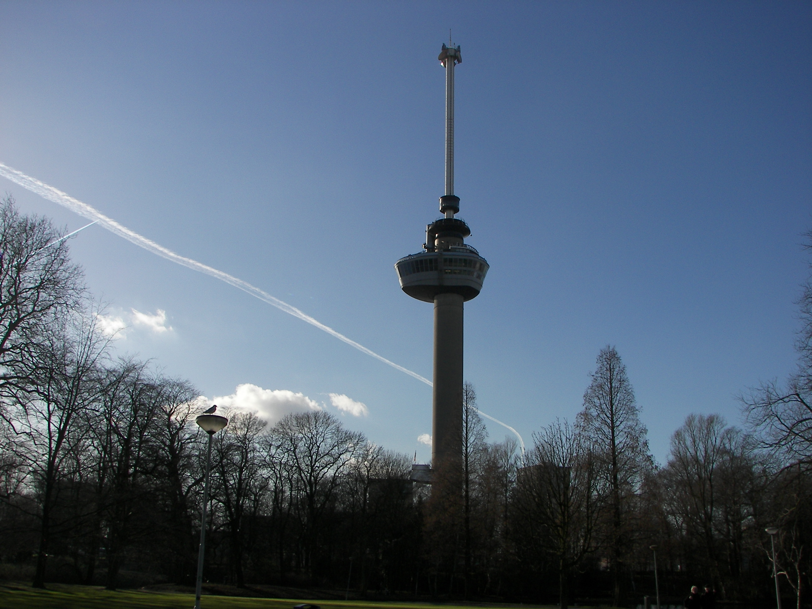 De trots van rotterdam.. De toren heeft nu een totale hoogte van 185 meter. Bezoekers kunnen met de Euroscoop, een lift die rondom beglazen is, vanaf het Europscoopdek op 112 meter hoogte naar het hoogste punt op 185 meter hoogte. Bezoekers worden naar het oorspronkelijke hoogste punt gebracht met twee liften die beide 4 meter per seconde afleggen.