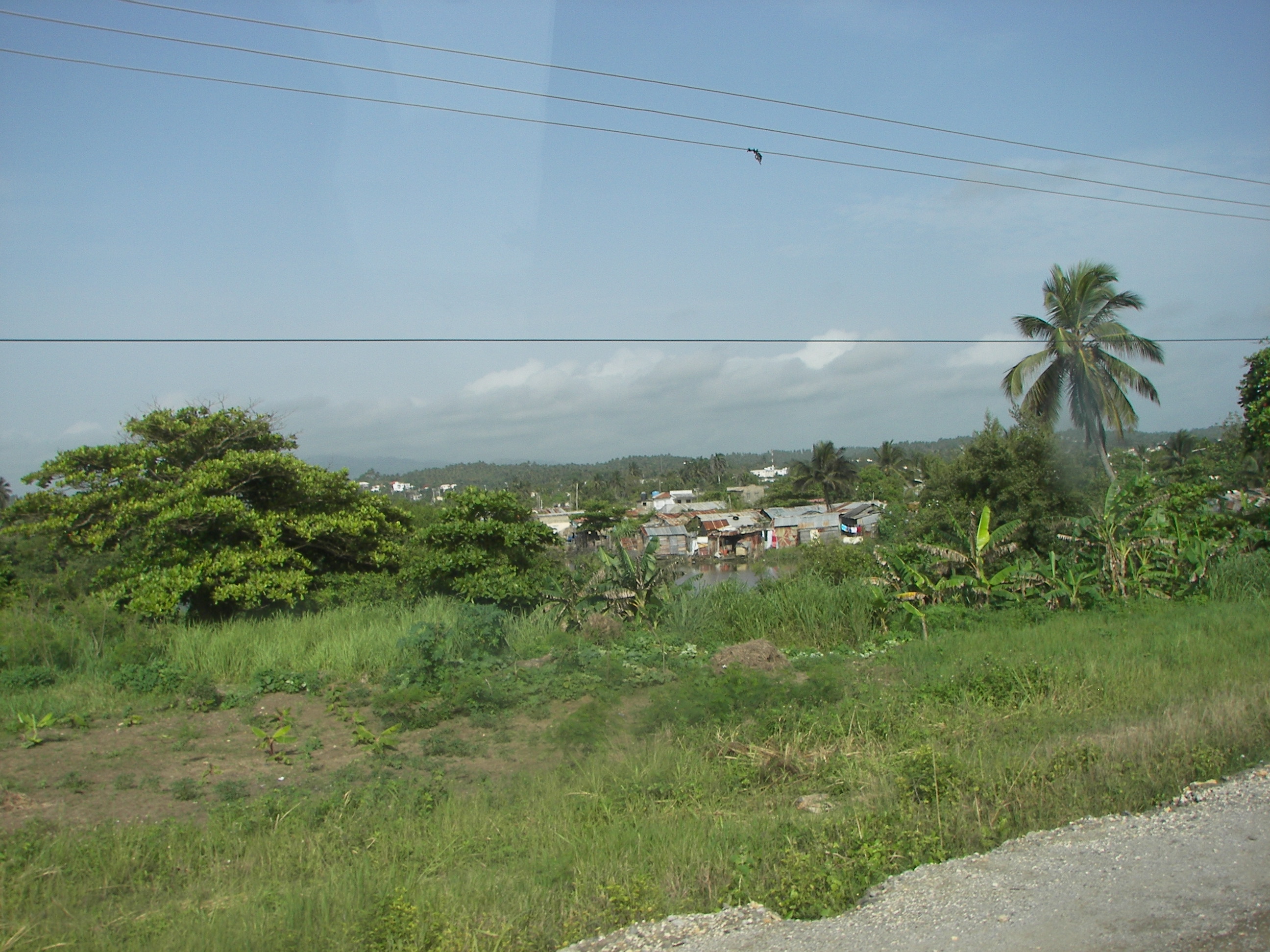 Op het platteland en in afgelegen streken zijn dit soort foto`s te maken in de Dominicaanse republiek . Je kunt in de verte zien hoe de mensen in de hutjes wonen. Deze is tijdens het rijden genomen vanuit de bus.