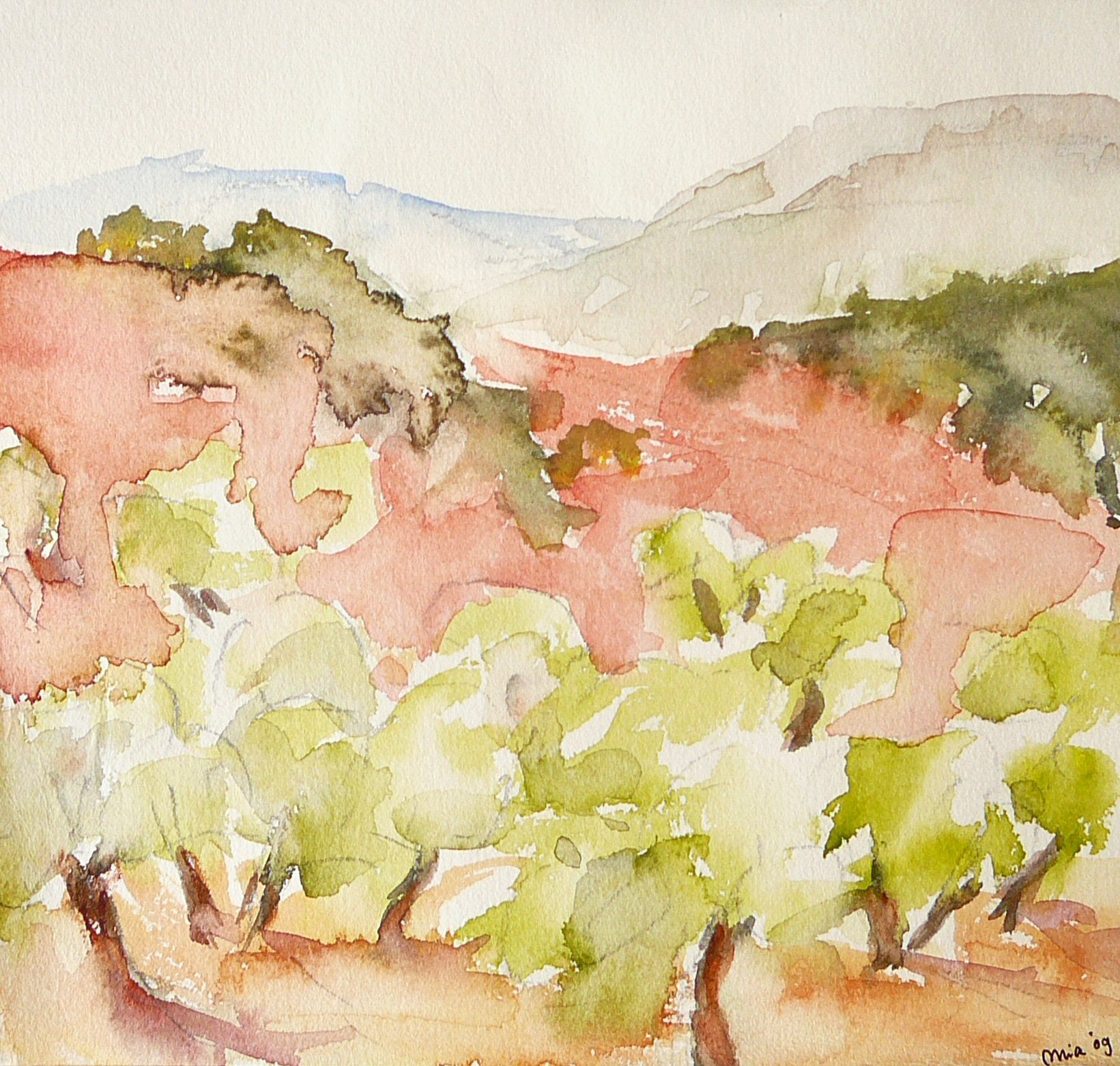 Aquarel Spanje Olijfboomgaard Bomen