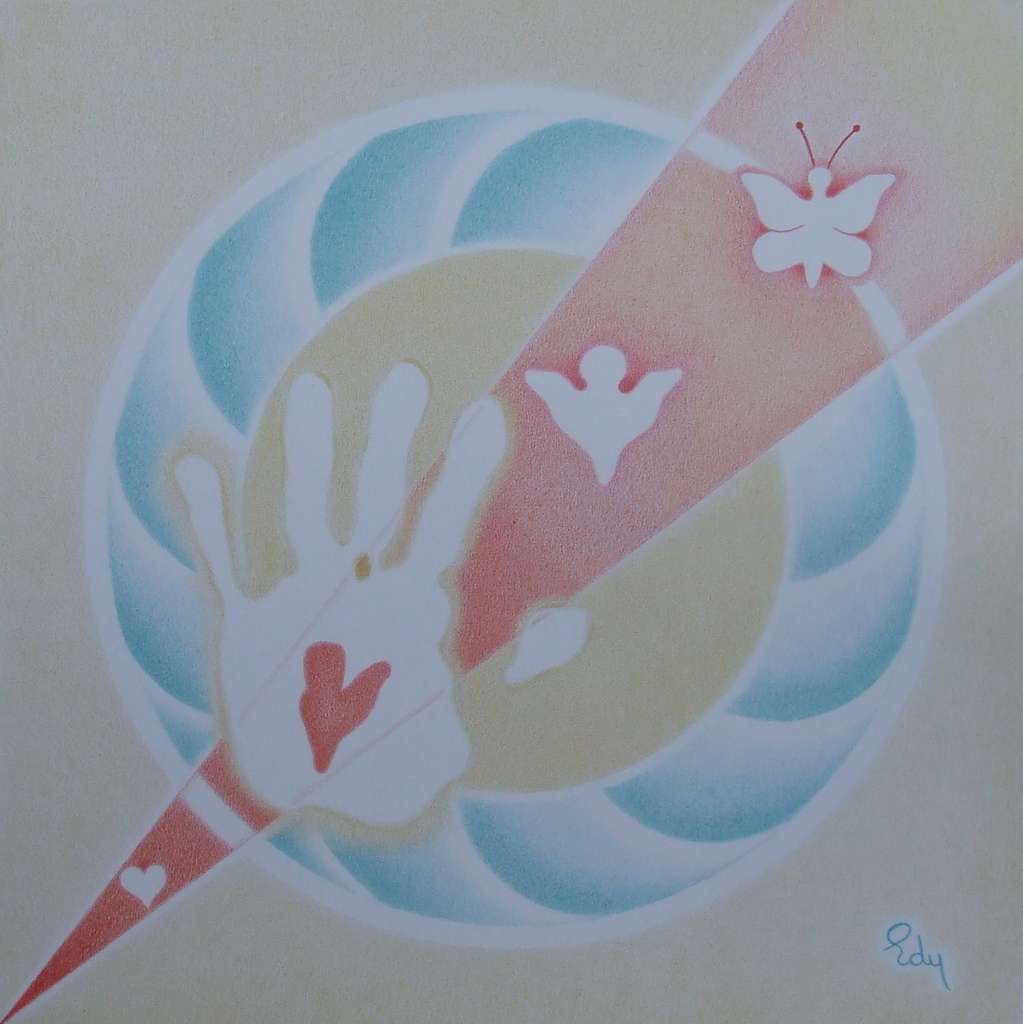 Edy combineert haar liefde voor kleuren en papier door blanco tekenvellen te vullen met in elkaar overvloeiende kleuren en mooie vormen. Vaak is een mandala de basis.