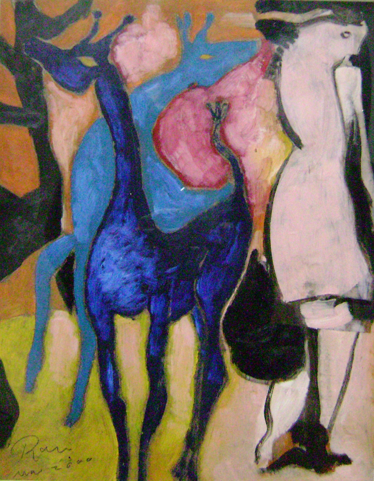 Olieverf op board. Ingelijst achter glas. Gesigneerd, gedateerd (maart 2000).