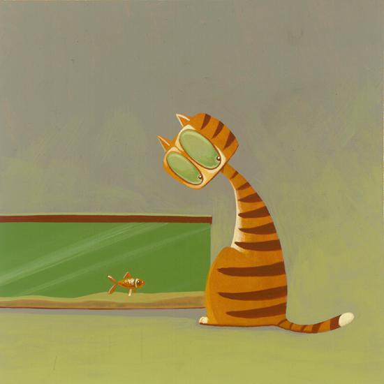 Schilder van dieren in menselijke situaties (met name kikkers).