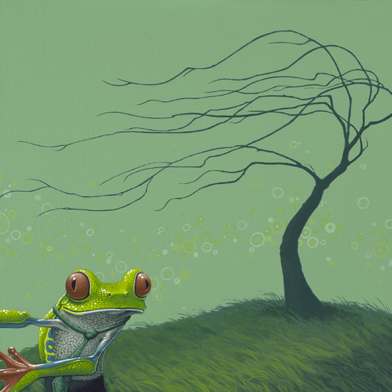 Schilder van dieren in menselijke situaties (met name kikkers).