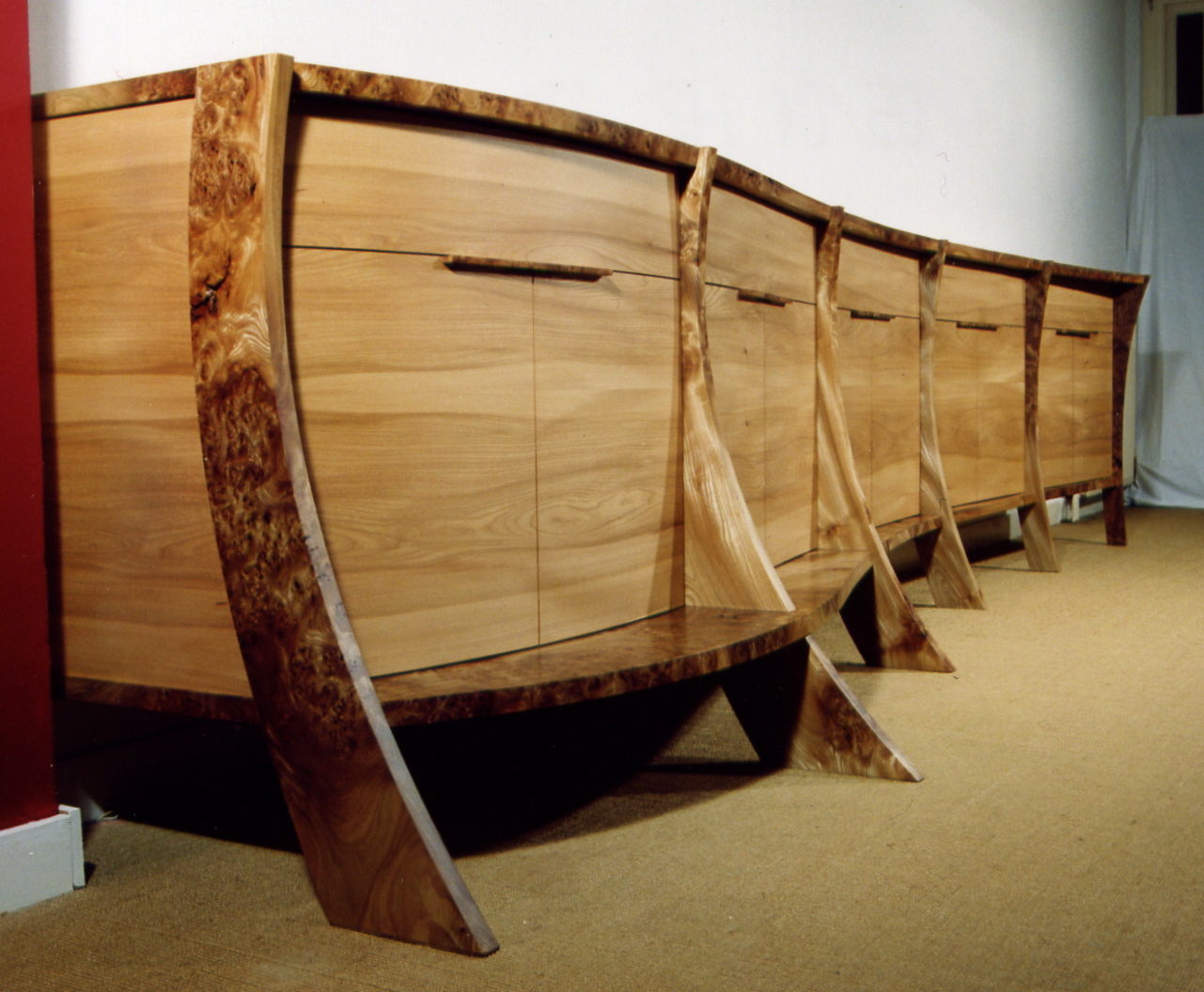 Dit dressoir van gemoest iepen ontstond nadat mijn opdrachtgever me had gevraagd een cd-rekje te maken. De gesprekken die we hadden in de voorbereidingsfase gingen over alles behave de kast, slingerde door allerlei onderwerpen en waren fantastisch. Dat resulteerde in dit waanzinnige hout en speelse ontwerp.