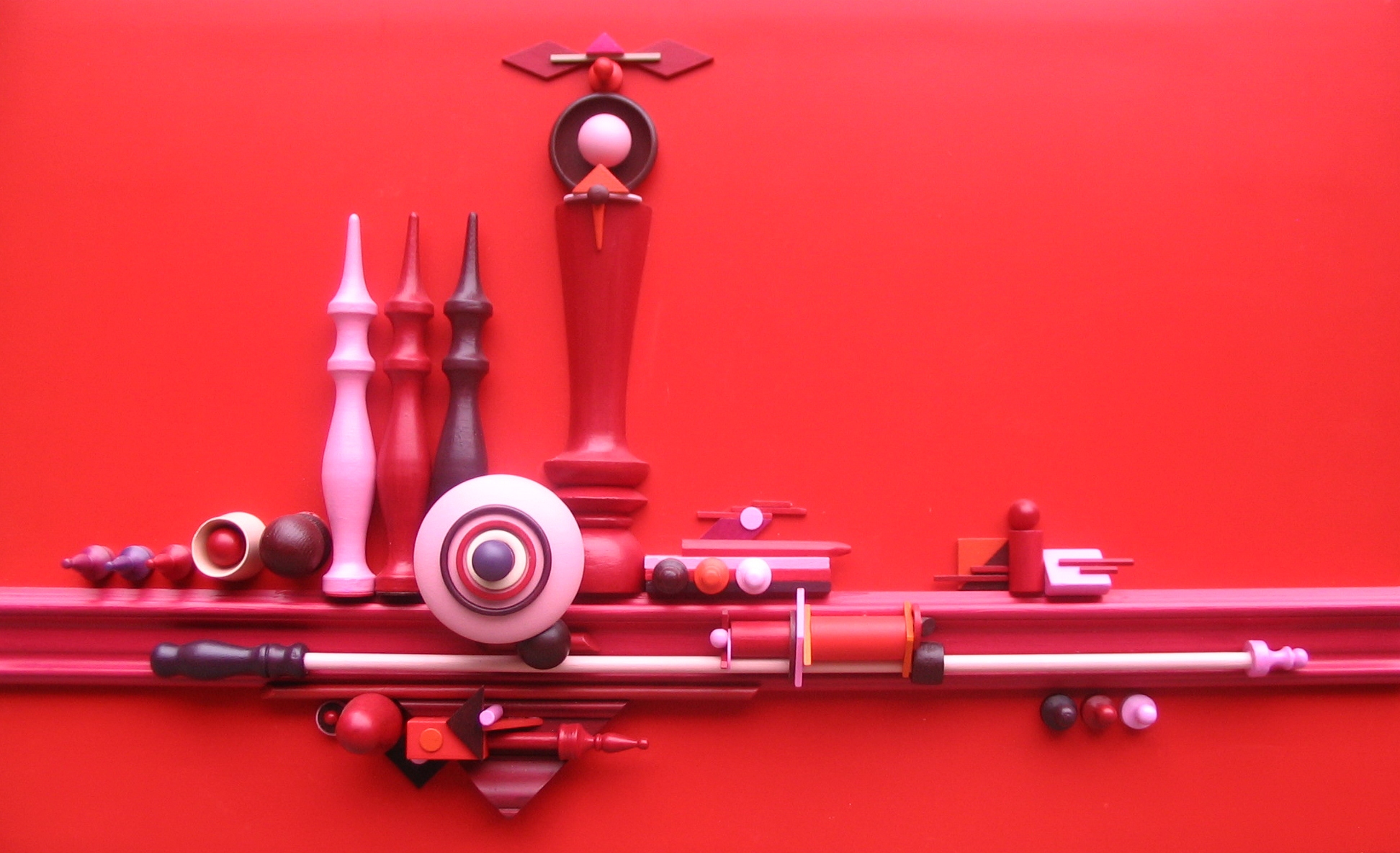 houten sculptuur op panneel acryl.