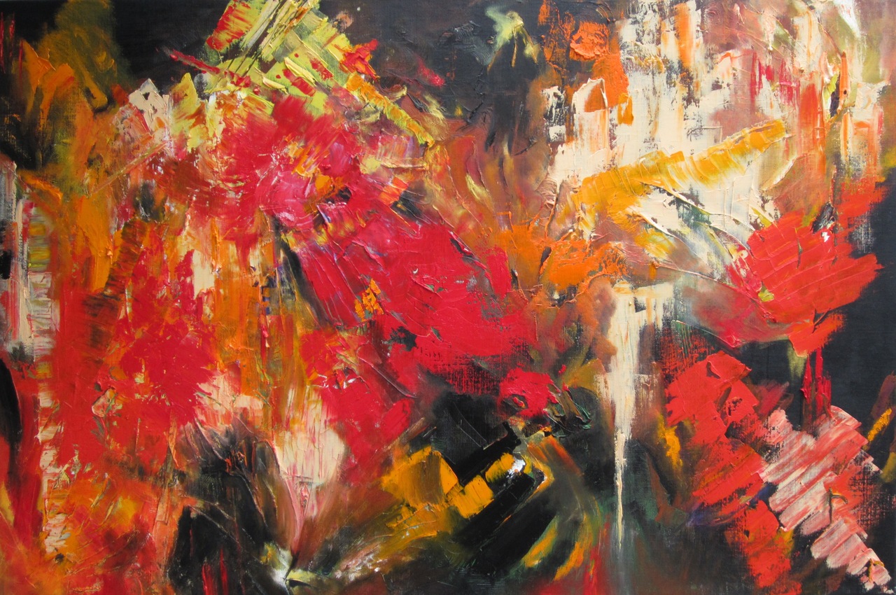 Riny Vroon schildert al vele jaren. Zij werkt zonder te schetsen, spontaan en expressief. Haar doeken prikkelen de verbeelding zodat de kijker er een eigen verhaal van kan maken. Je bespeurt plotseling een rivierbedding, een stadsgezicht of de contouren van bloemen. De harmonie van kleuren is een lust voor het oog.De thema's zijn actueel en herkenbaar voor iedereen.
