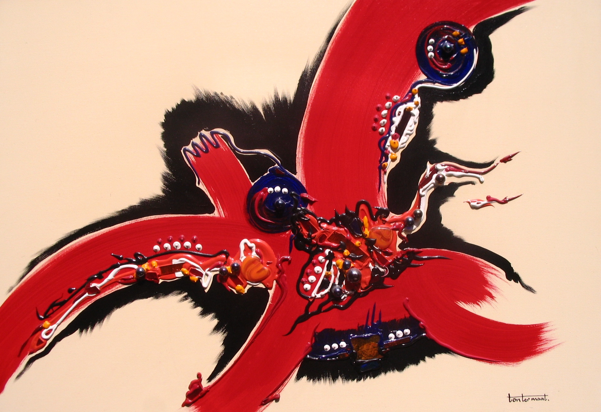 acryl schilderij met glas en kralen.