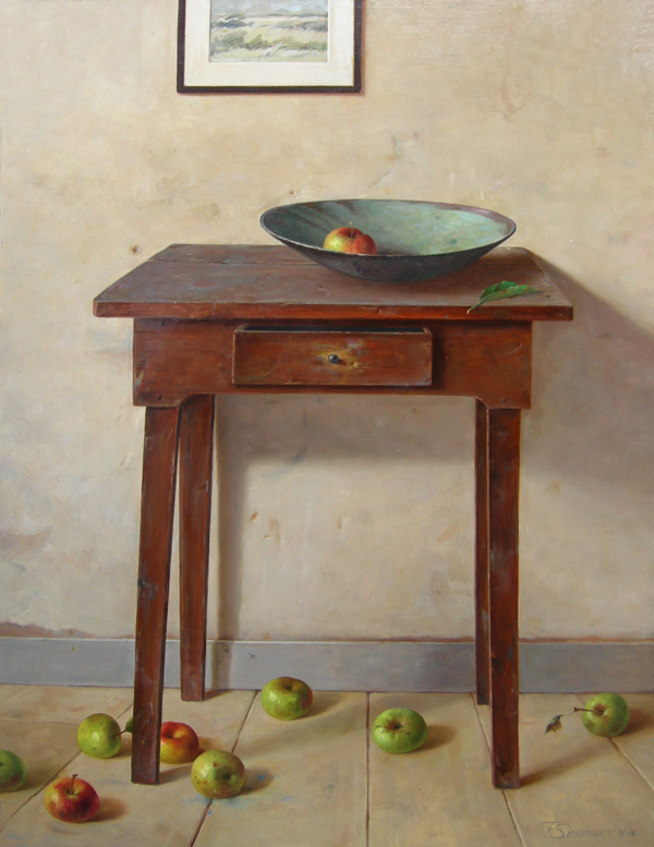 Hout Art Schaal Stilleven Oud Keuken Appels Nostalgie Interieur Antiek Tafeltje