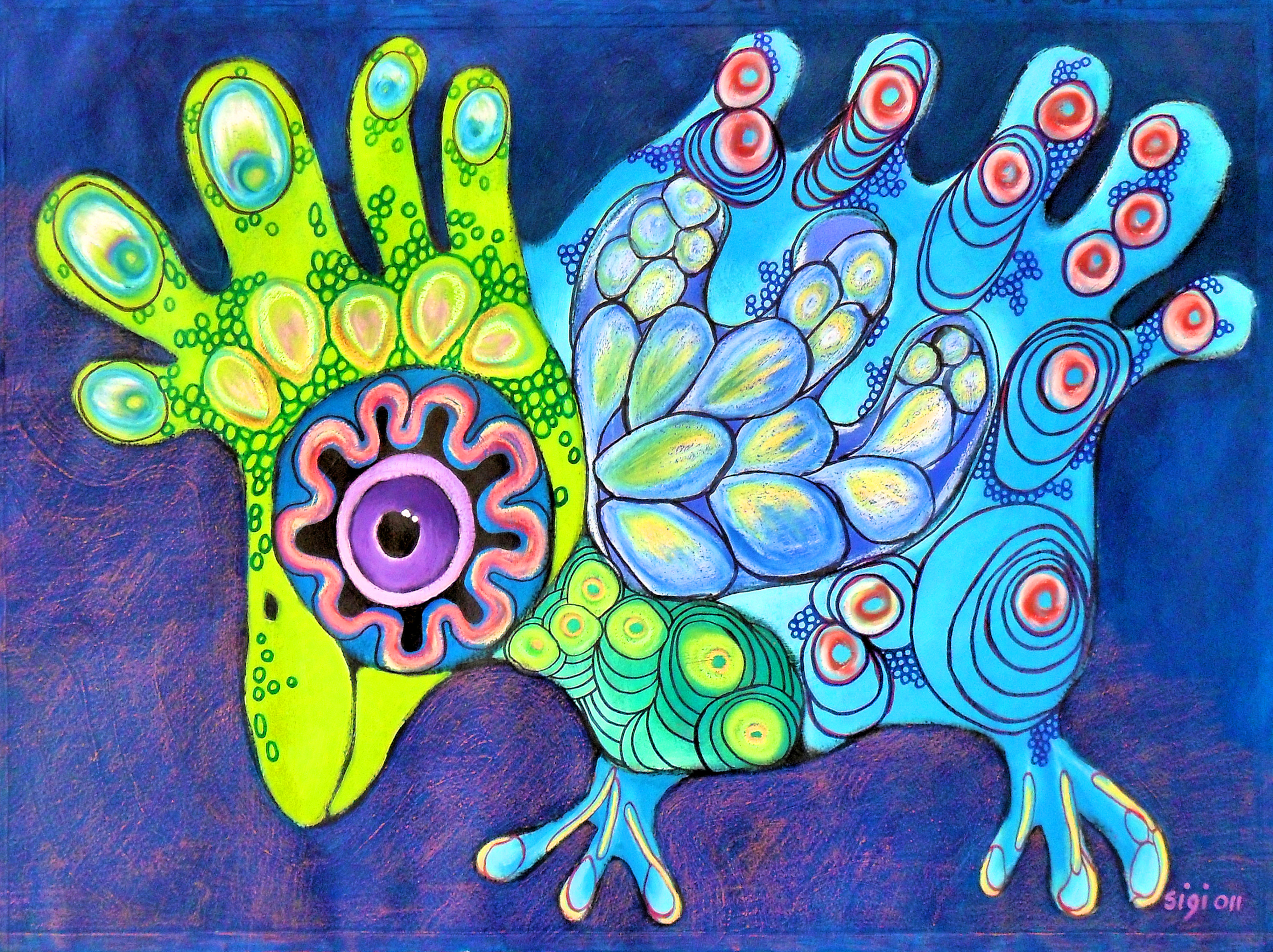 Sigi is mijn schildersnaam en ik schilder de laatste jaren vooral vogels. In allerlei vormen, maten, kleuren. Ik zet mij niet vast op 1 techniek, wil alles uitproberen en doen. Als ik maar kan creeëren in alle vrijheid.