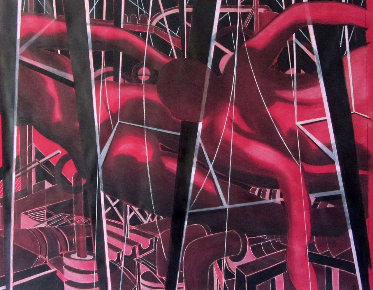 Drawing is a discipline in which ‘looking outside’ and ‘looking and moving within the frame of the paper’ is very important. Sources of inspiration are urban and industrial landscapes and shapes of the human body. Tom’s work consists of countless shades of black but he also uses colour in an exciting way. The artworks change as the daylight changes. Observations and impressions from spending time outdoors inspire his artwork. His skilled drawings may develop into new drawings as well as paintings. In his paintings he combines colour, patches and blots with lines to create several spaces.