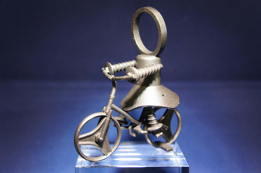 (2011) The Scrappies - Op de fiets Hoogte (met sokkel): 16 cm De plastieken worden als unikaten in het 3DP-proces (driedimensionaal afdrukken) van staal met brons vervardigd en op een kristalglazen sokkel (80x50x50 mm) gemonteerd. [...meer...]
