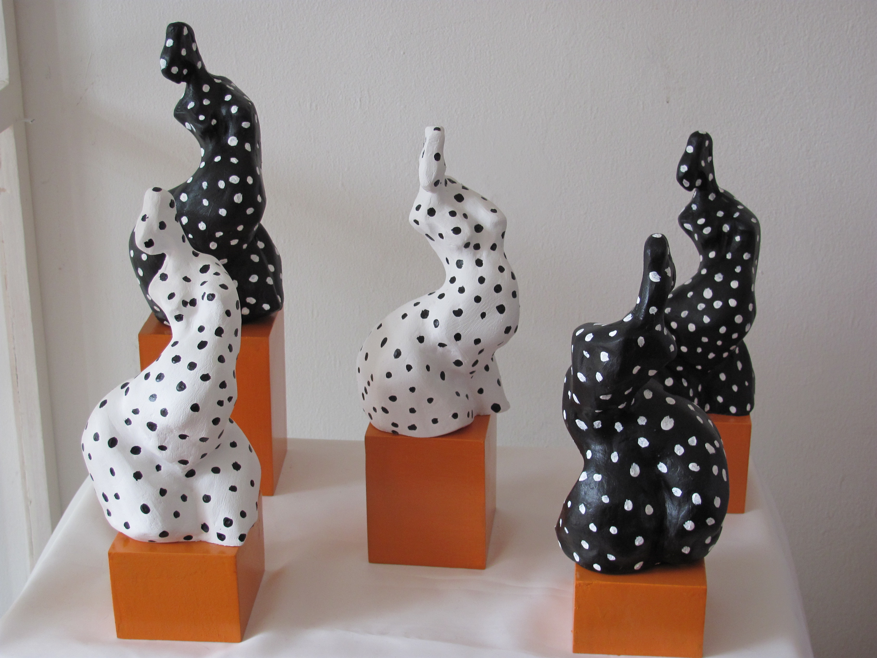 Al vele jaren werk ik met papier maché. Een prachtige techniek. Vanuit oud papier komen tot een kleurrijk object. Iedere keer is het weer bijzonder om te ervaren hoe het papier a.h.w. vervormt tot een substantie waarmee een nieuw beeld wordt gemaakt. Daarnaast boetseer ik. Vaak is een levend model het uitgangspunt. Vandaar uit werk ik associatief. Zowel bij mens- als dierbeelden probeer ik beweging en emoties weer te geven. Klei, was, brons en gips zijn de materialen.