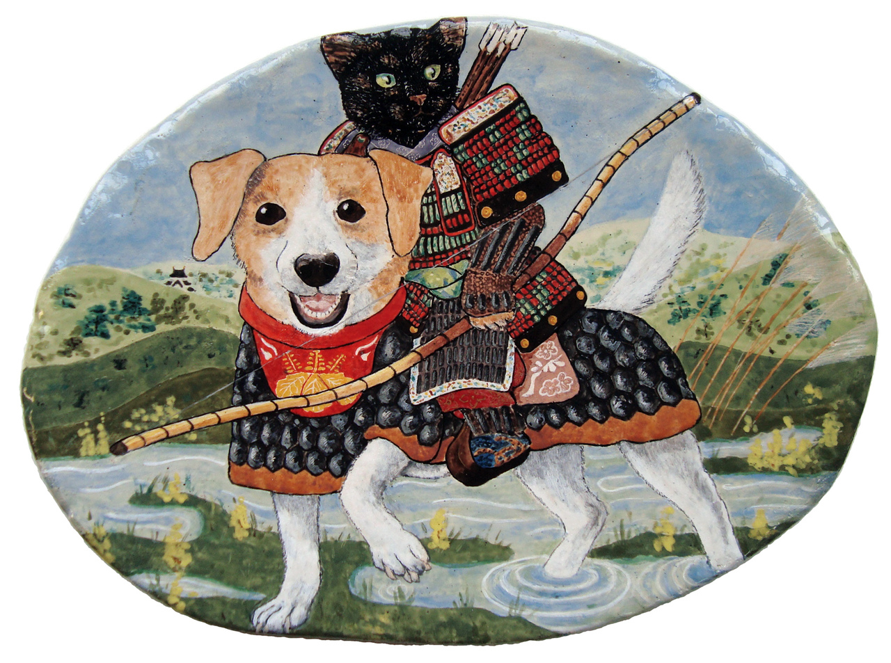 Keramiek Portret Kat Japan Harnas Hond Dog Cat Armor Ceramics