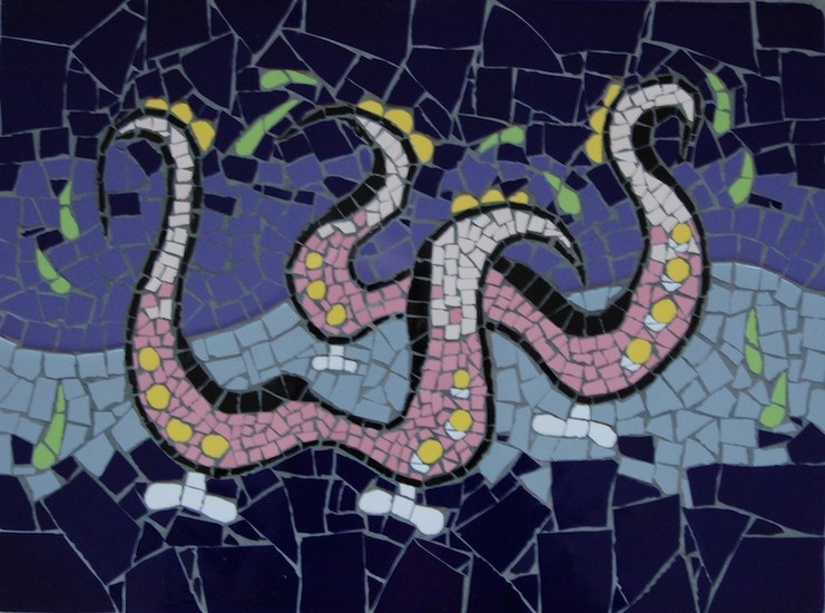 Uniek mozaiekwerk naar eigen fantasie. Je mag er wat in zien maar dat hoeft niet.
