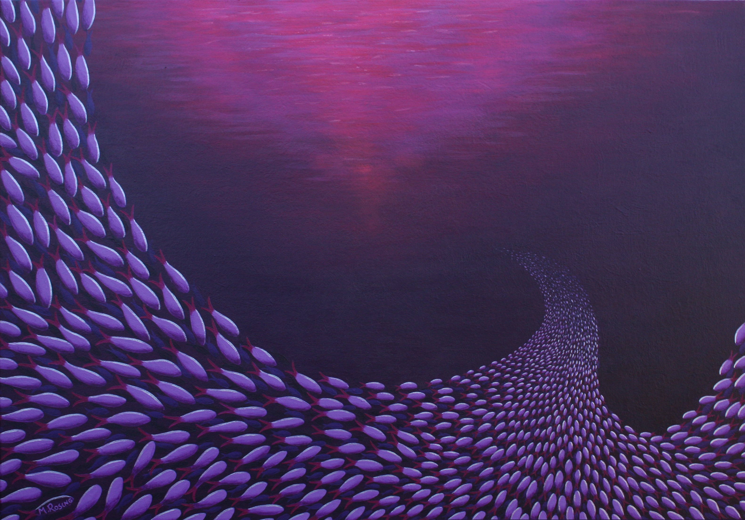 Marieke Rosing Loppersum Zee Acryl Paars Canvas Zilver Purple Silver Fantasie Vissen Oceaan Ocean Fantasy School Sea Fish Great-sardine-run