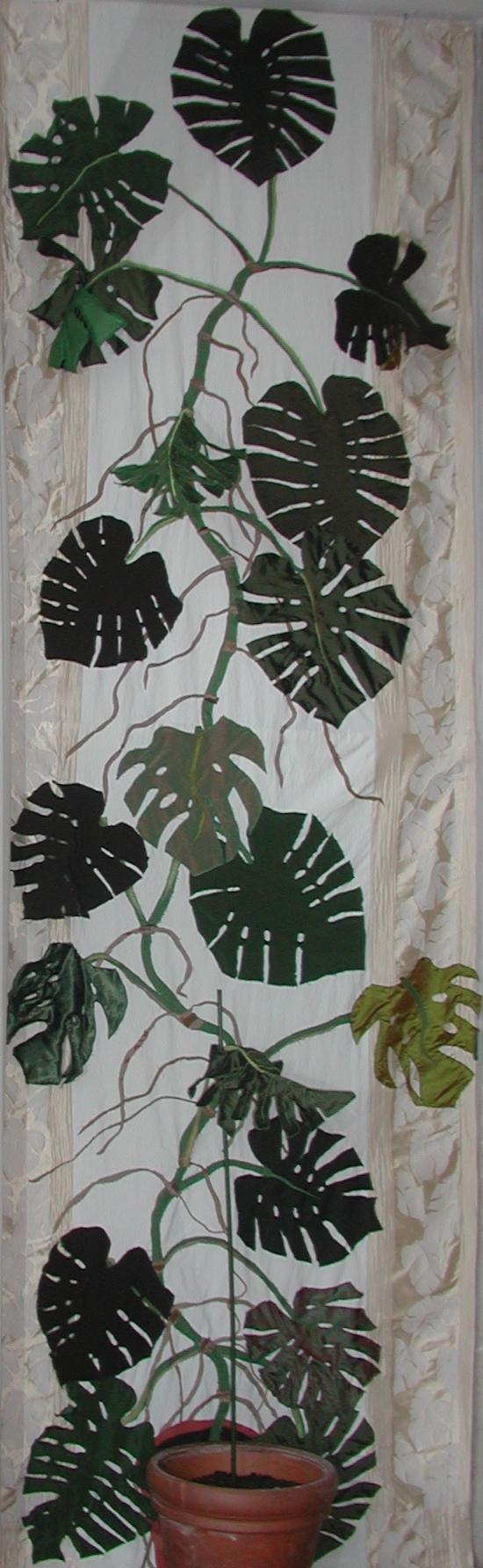 Adinka Tellegen maakt doeken die ‘geschilderd’ zijn op de naaimachine. Er komt geen pen, geen potlood en geen penseel aan te pas, alleen stukjes textiel en machinegaren. Dat is pas van dichtbij te zien.