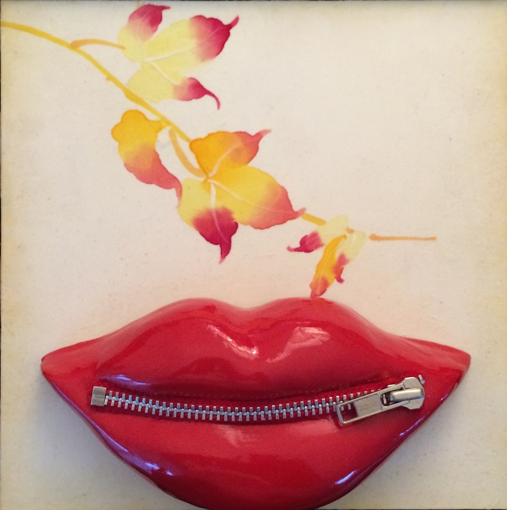 Mond van aluminium cement ingelijst op handbeschilderde zijde