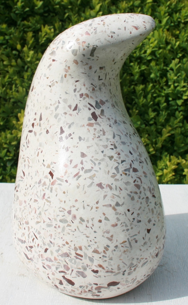 Deze vogel is is gemaakt met een mix bruine granito,glas en wit cement. Helder en glanzend wanneer het (zon)licht erop schijnt.