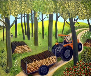 Surreeel Landschap Vogel Groen Bomen Hoed Grappig Humor Mannetje Heuvels Naief Merel