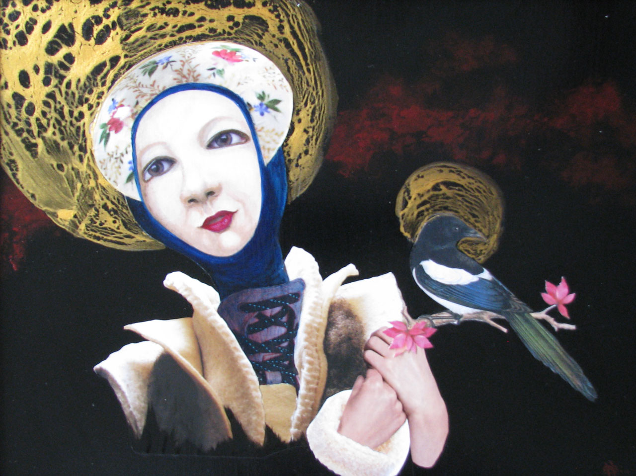 Magpie Ekster Vrouw Lady Dame Vroom Devout Vogel Bird Collage Surreeel