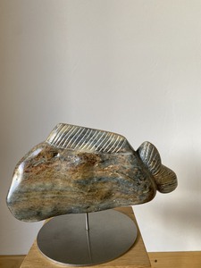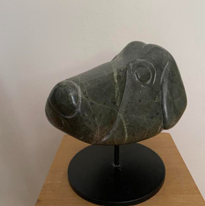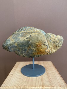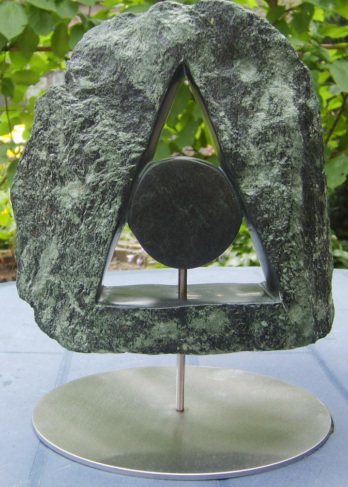 A-vorm uit Indiaas speksteen op RVS sokkel