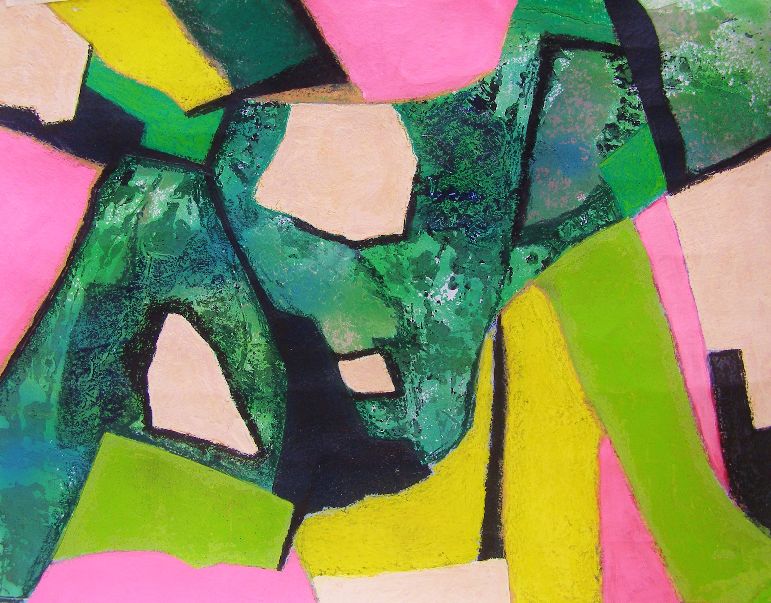 Abstracte en figuratieve schilderijen in gemengde techniek en collages, tekeningen en foto's.