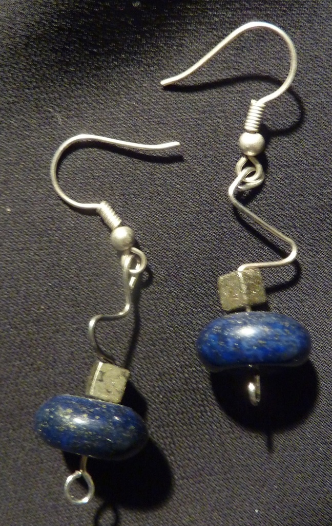 Oorbellen met Lapis Lazuli en Pyrite (3 cm). Incl. organza cadeauzakje en verzendkosten
