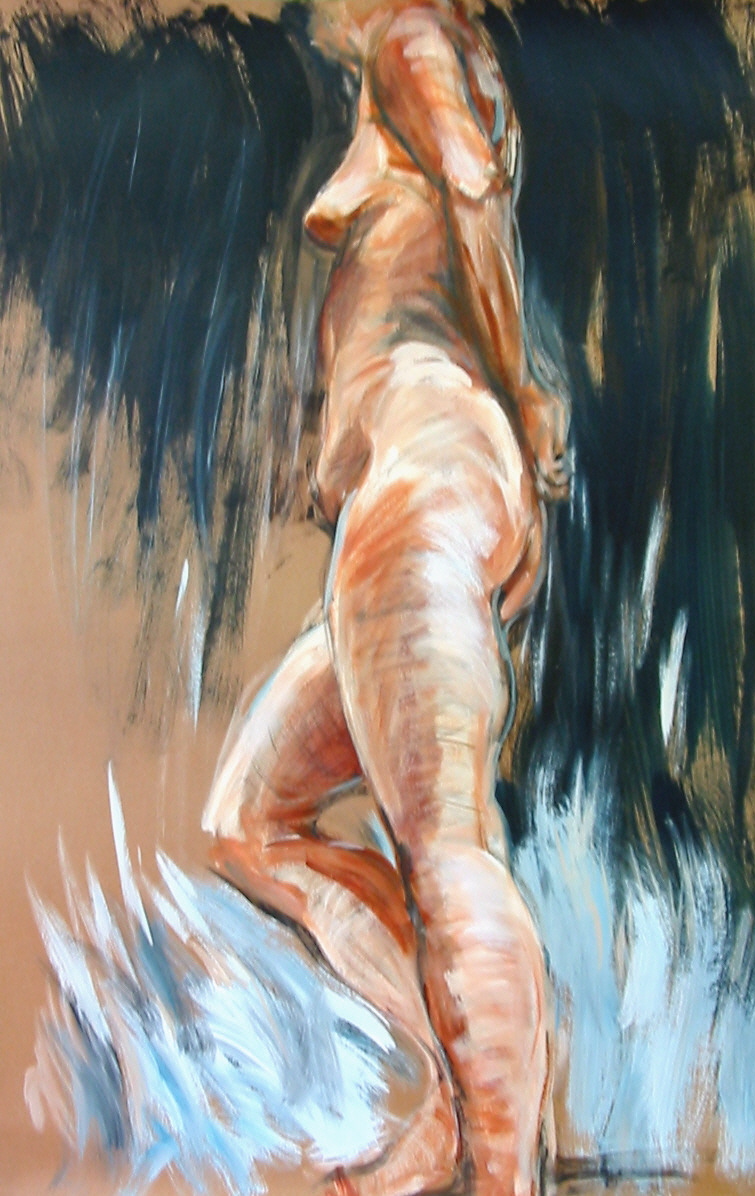 Hoe langer je leeft , hoe meer bagage. Er is zoveel om van te houden. Wanhopig zoek ik naar één rode draad, maar heb inmiddels een heel breiwerk om me heen geknutseld ! Maar terwijl ik teken of schilder lijkt het even of alles gaat kloppen. Dan gaat het over rust, ruimte, adem, licht, warmte, humor, compassie, geduld, concentratie, balans, geluk. Ik denk, ik ben een eeuwige reiziger, onrustig zoekend naar een kern van waarheid. Ik vertrouw op mezelf en op mijn zorgvuldig ingepakte rugzak met gereedschap. En daar moet ik het mee doen. Manje Dijkman (1954 Enschede) Volgde opleiding aan academie Minerva Groningen en aan de Aki Enschede (1976- 1981). Was van 1982-2006 docente beeldende vorming bij Concordia K&C in Enschede, Hof 88 in Almelo en de Hooge Lucht in Oldenzaal. Gaf daar voornamel