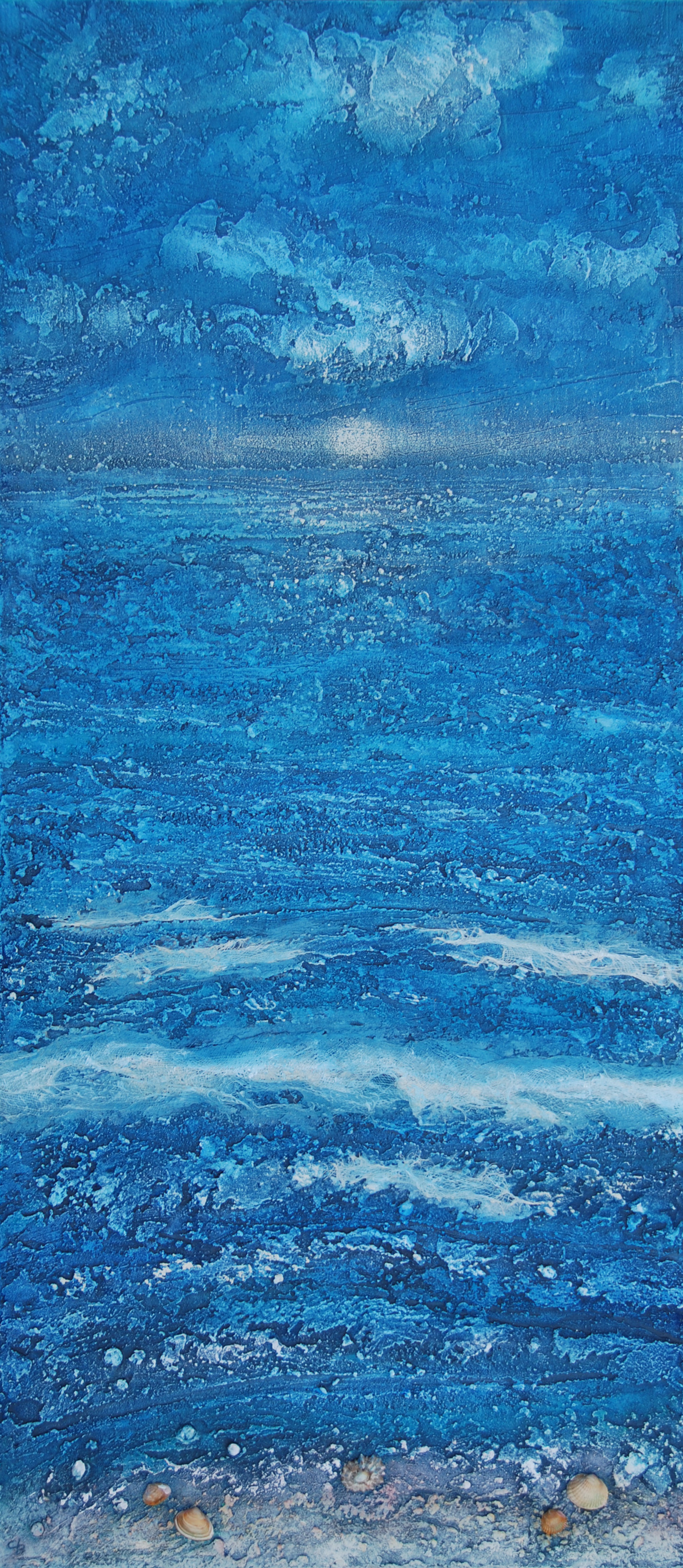 zeegezicht met schelpenstrandje