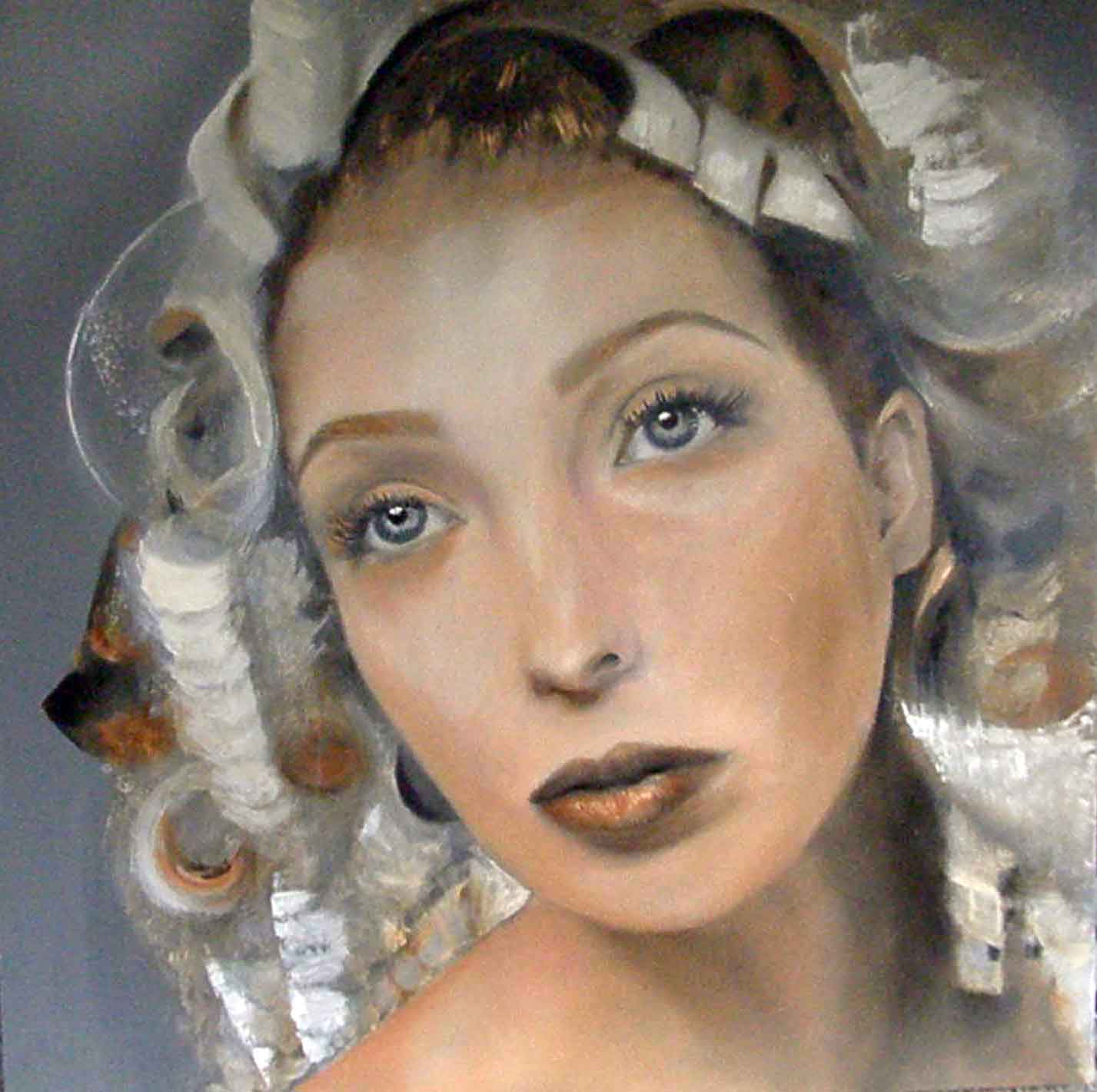 Chantal met papillotten van goudpapier in het haar