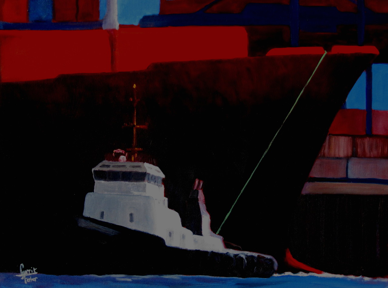 Sleper bij containerschip