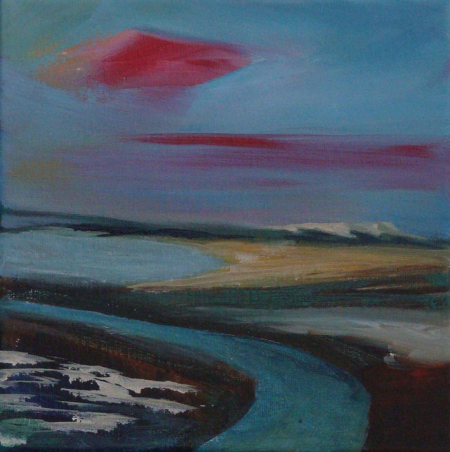 Strand Grijs Landschap Blauw Acryl Oker Kunst Natuur Kust Eiland Ameland Terschelling Wad Avondrood Annekehvisser