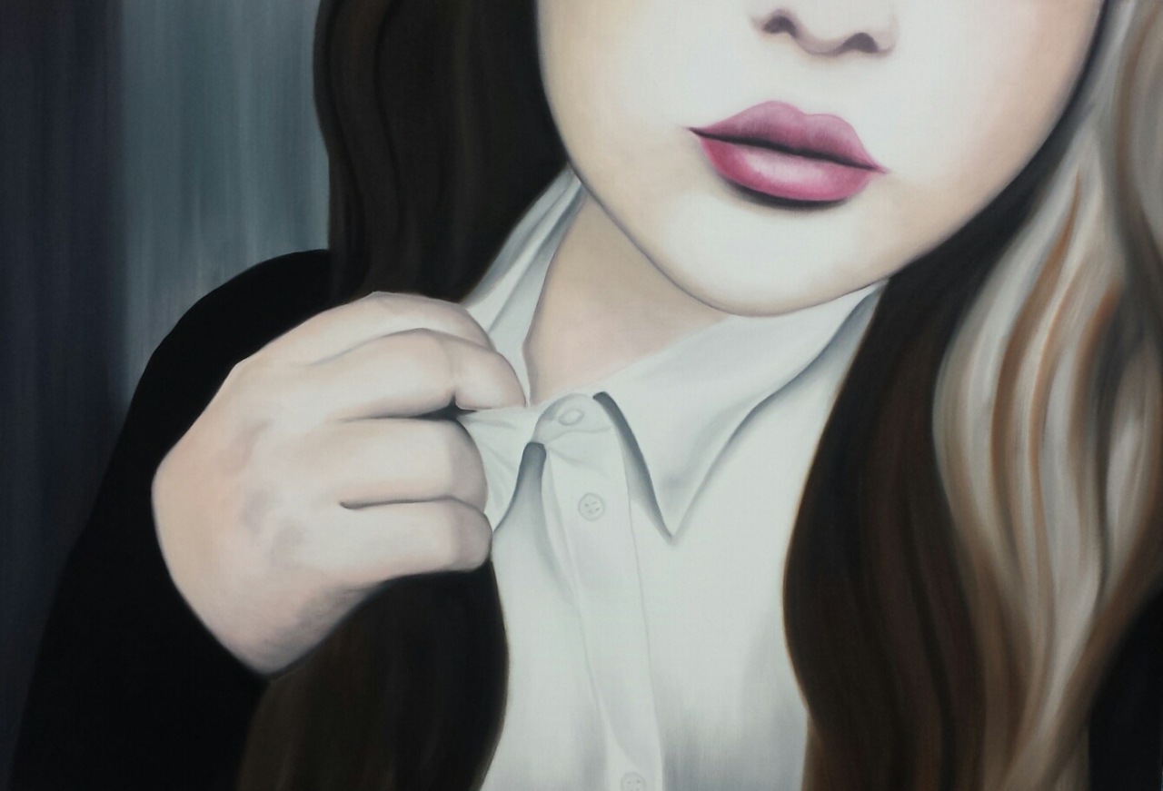 Schilderijen in olieverf. Vrouwelijke schilderijen met een voorkeur van close-up fragmenten, gebracht in een realistische stijl of in een popart stijl.