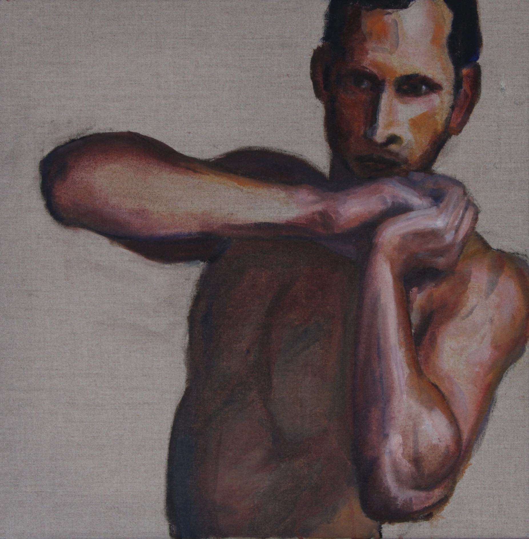 Man Naakt Op Onbewerkt Linnen