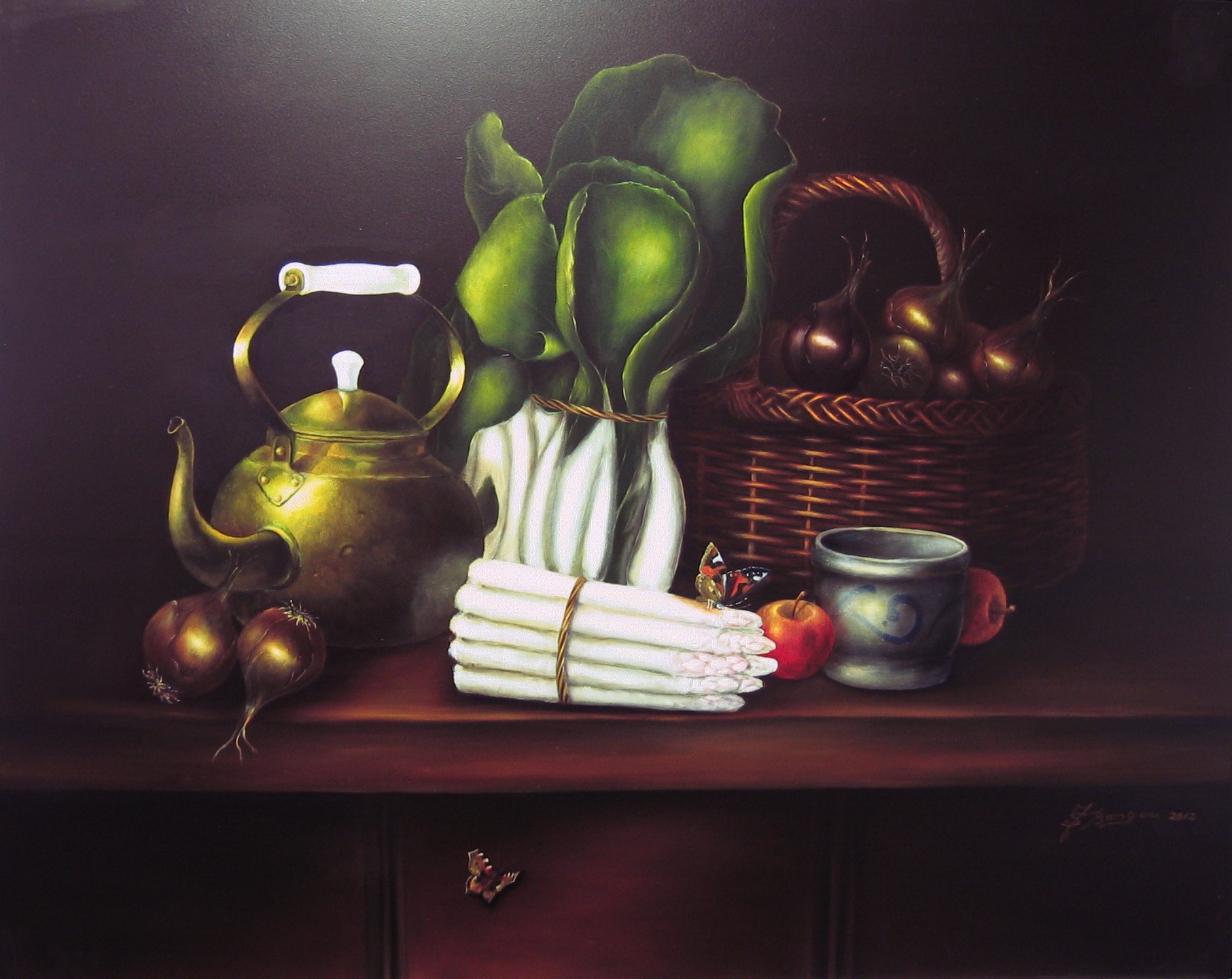 Mijn werk bestaat uit realistische stillevens met composities die een impressie weergeven uit het verleden, maar ook uit het huidige leven.