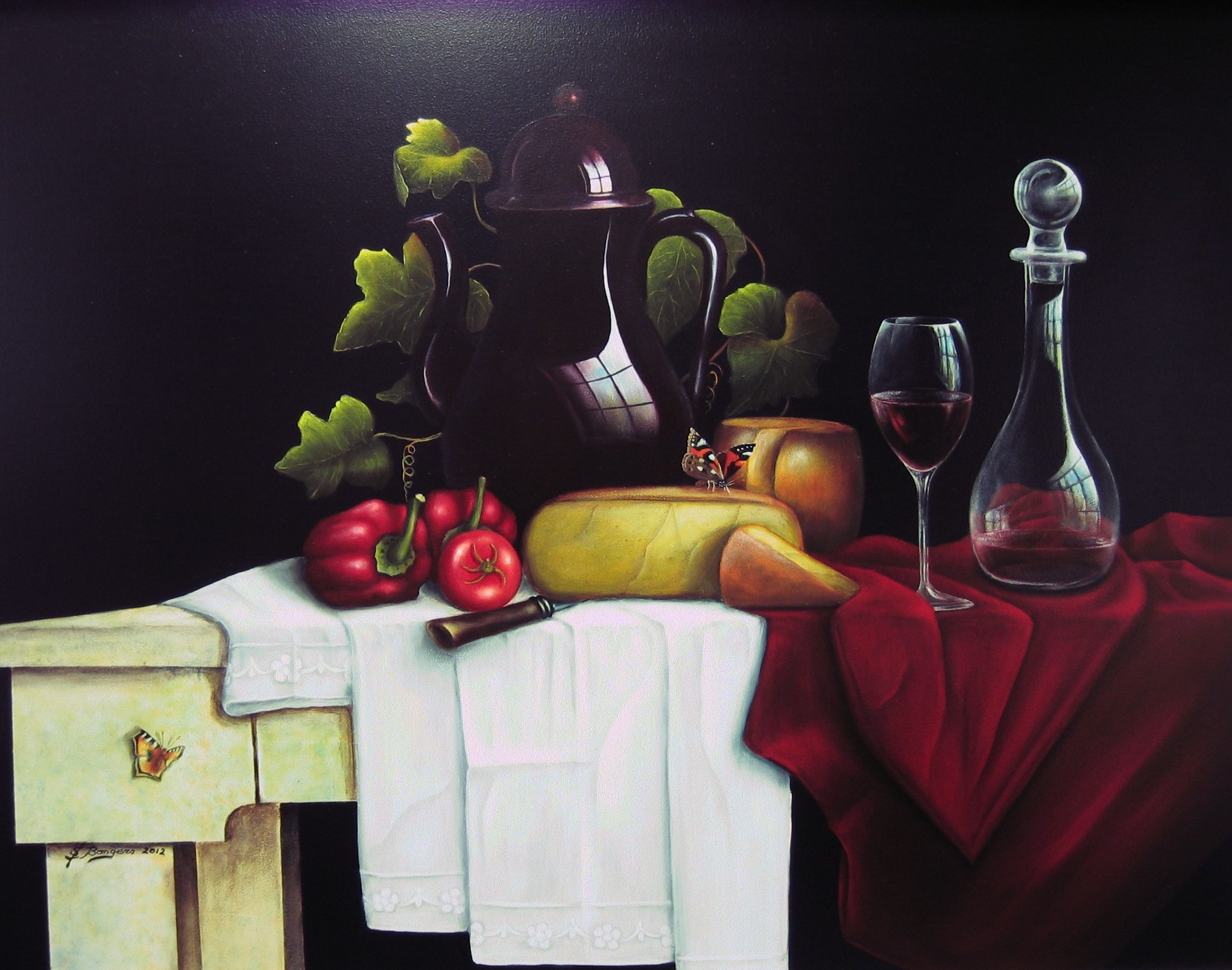 Mijn werk bestaat uit realistische stillevens met composities die een impressie weergeven uit het verleden, maar ook uit het huidige leven.