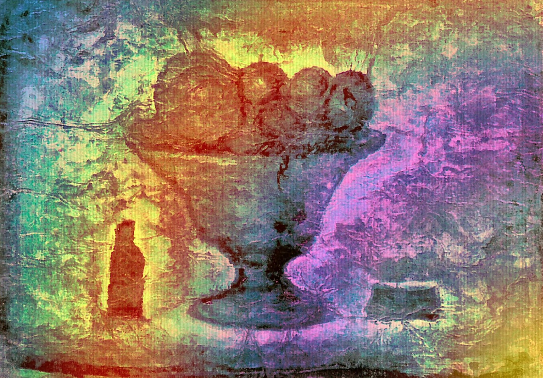 Schilderij is gemaakt van papier met ecoline